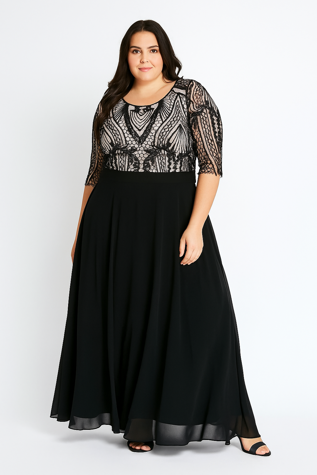 Vestido manga larga con aplicacion